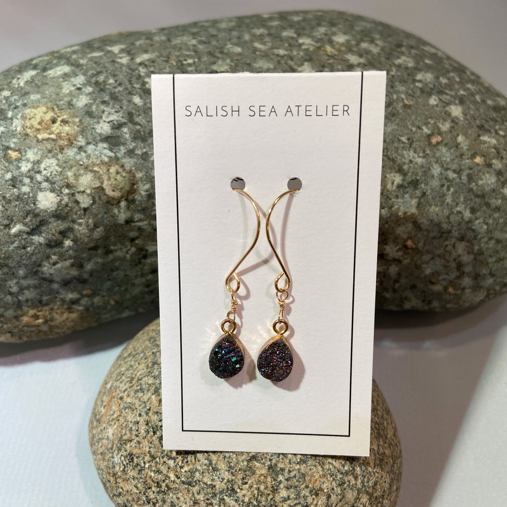 I’ve always enjoyed making things, from baking when I was small, to sewing, spinning, weaving and dyeing wool or making candles. Jewelry came about when I was on a two year temporary assignment doing a very cerebral job and living in a hotel in Victoria during the week. I started taking jewelry classes at Skanda and kept finding myself there and losing track of time.